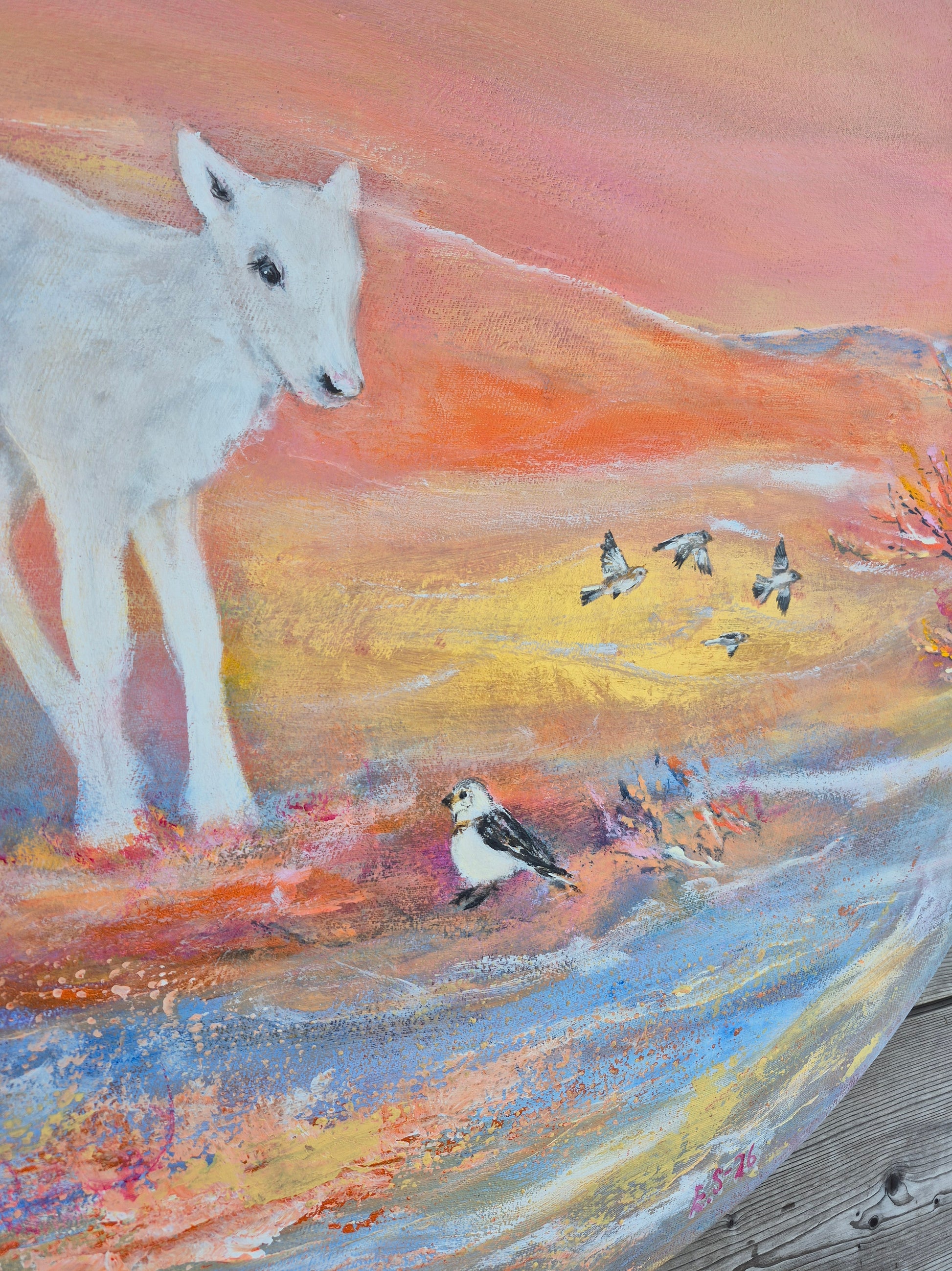 Emilia Syväjärven alkuperäisteos, akryylimaalaus kankaalle